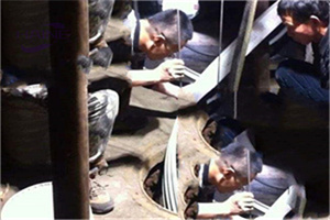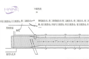 是將 PVC條形的 PVC型材放在已有的人孔井口,經(jīng)特殊的卷繞機(jī)在原來(lái)的管內(nèi)繞制而成。為了提高結(jié)構(gòu)的強(qiáng)度,采用了 T形的外壁。同時(shí),新的管道的內(nèi)壁也是平滑的,可以提高管道的流暢度。該帶狀型材兩側(cè)設(shè)有一對(duì)公母鎖,它們以螺旋轉(zhuǎn)動(dòng)方式相互連接,由此構(gòu)成一個(gè)新的連續(xù)無(wú)縫管道。在一節(jié)螺旋管完成后,用預(yù)先埋設(shè)的鋼絲把二次鎖扣扯斷,使新的管子沿徑向膨脹,直至新的管子與原來(lái)的管子緊密地粘在一起。
